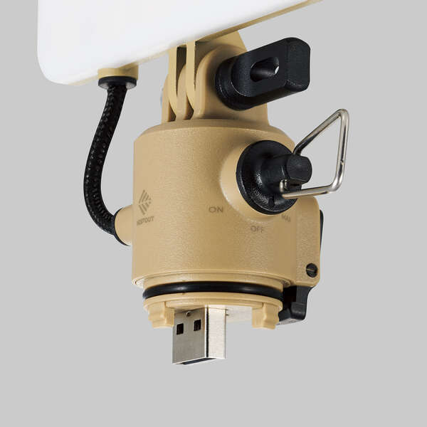 NESTOUTアウトドアバッテリーに取り付けることが出来る専用ギアLEDランタン"FLASH-1"。色味を調光できる強い光で食事の準備やテントの設営などのシーンで活躍します。シーンに合わせて暖色、白色、昼白色の3色に切り替えることができます。