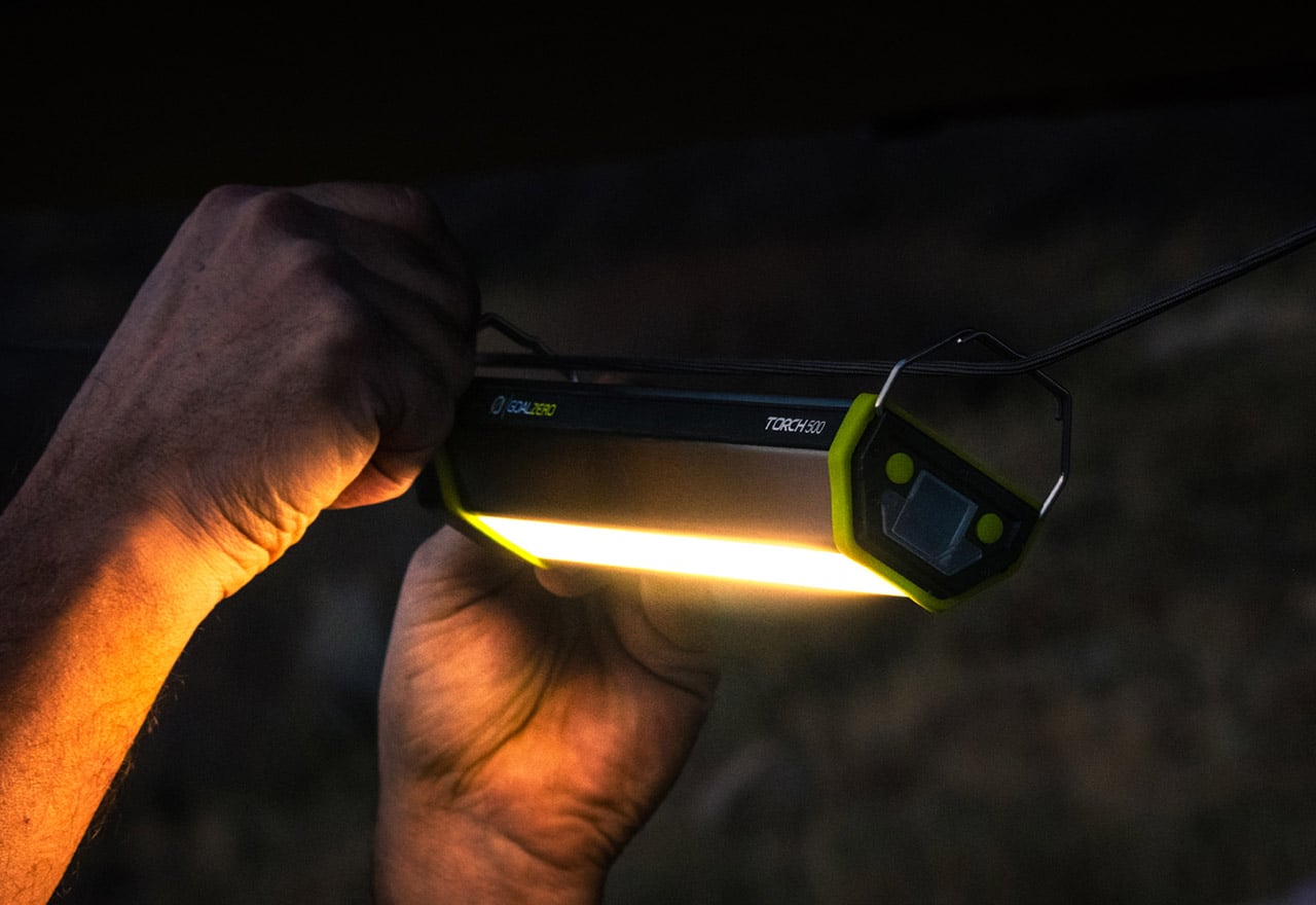 Torch500には、300ルーメンの懐中電灯機能と300ルーメンのバー状ライトが搭載されており、それぞれ高、中、低の3段階の光量設定が可能です。