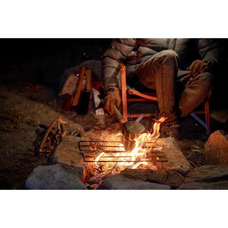 太径のステンレス材を丁寧に溶接して作っている為、大火力の焚火の中に放置しても歪みません。