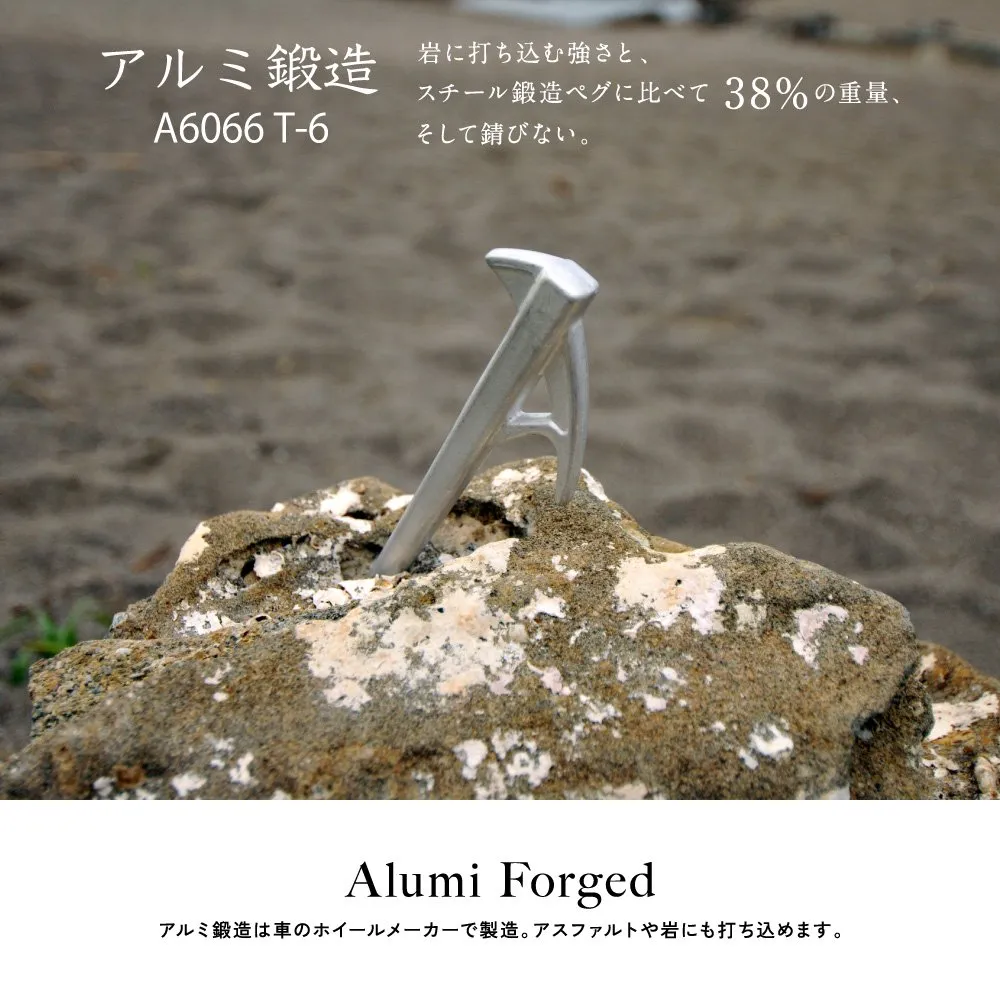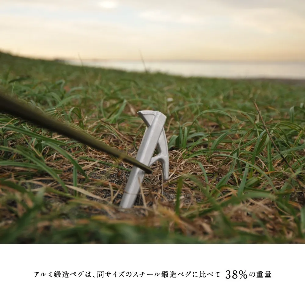 岩に打ち込む強さと、スチール鍛造ペグに比べて38%の重量。そして錆びない。