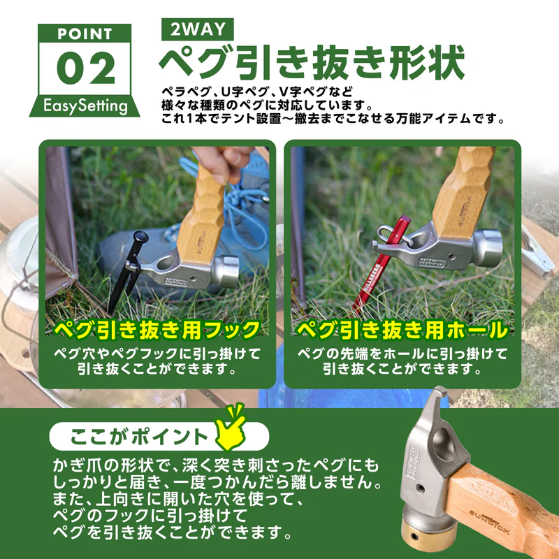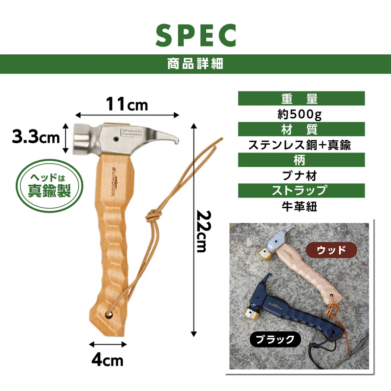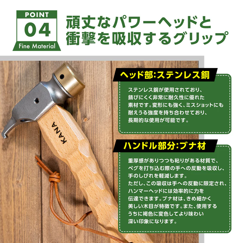 名栗加工のウッドハンドルが特徴的なおしゃれなペグハンマー♪
