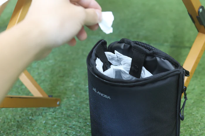 テーブル下に配置して 細かなゴミを捨てられる ダストバッグに。