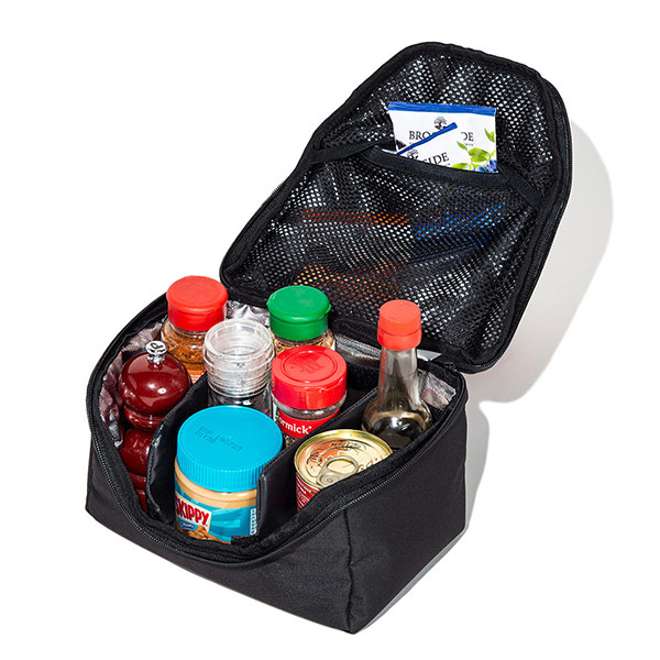 スパイスやオリーブオイルなど、アウトドアに欠かせない調味料の収納用キャリー、ペッパーボックスです。カスタイマイズが可能な仕切りと、蓋裏のネットはボトルを縦入れしても倒れにくい仕様となっています。