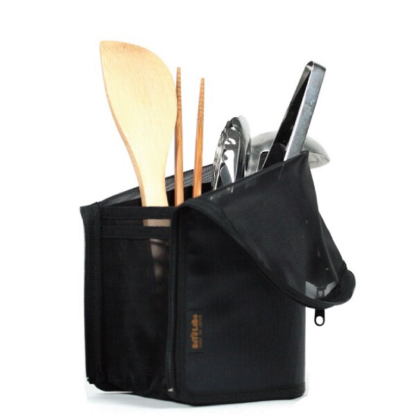 素材は、ボディ部分にXpacと中には自立するように芯材を入れ、それ以外の、上部・底面と極限まで細かいメッシュで虫や埃の侵入を防ぎ、水が溜まらないので、洗って濡れた状態で入れてどこかに吊下げておけば、乾くという機能的かつStylishなケースです。外での食事が楽しくなる、カラーバリエーションも豊富です。キャンプやバーベキューなど屋外で食事をして、洗い物が断然楽になります。
