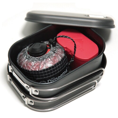 コッヘルなどにガスカートリッジを入れてもキズにならず、スタビライザーなども使用できる。