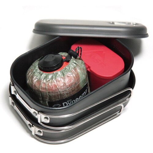 コッヘルなどにガスカートリッジを入れてもキズにならず、スタビライザーなども使用できる。