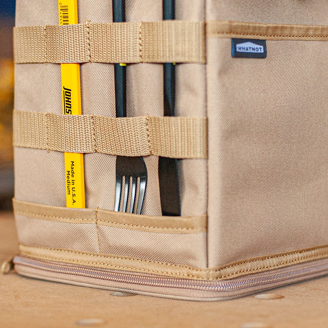 クッション材が入っているのでグラスやランタン、小型ファン、コーヒーセットまでさまざまなギアを安心して持ち運べます。