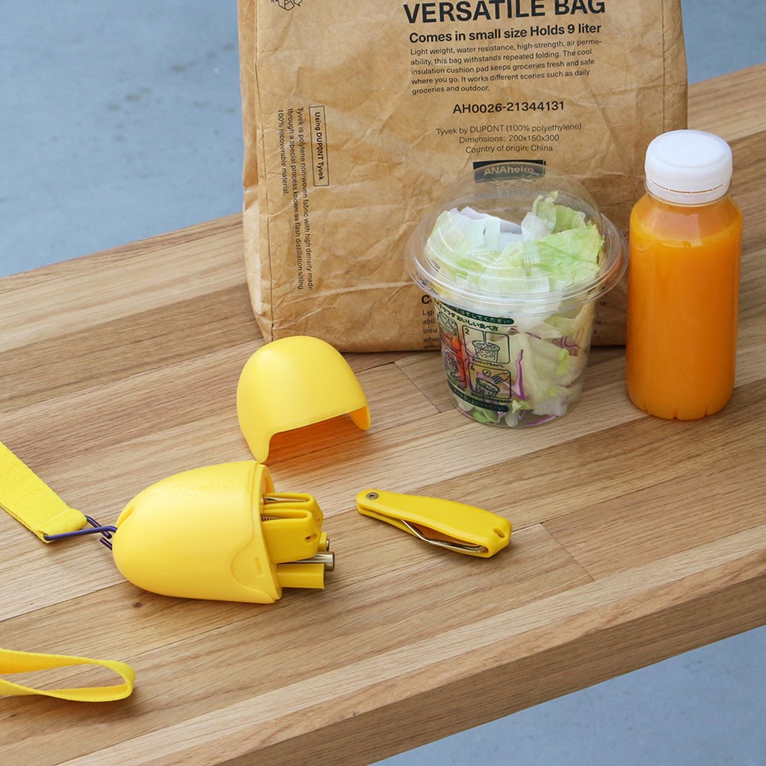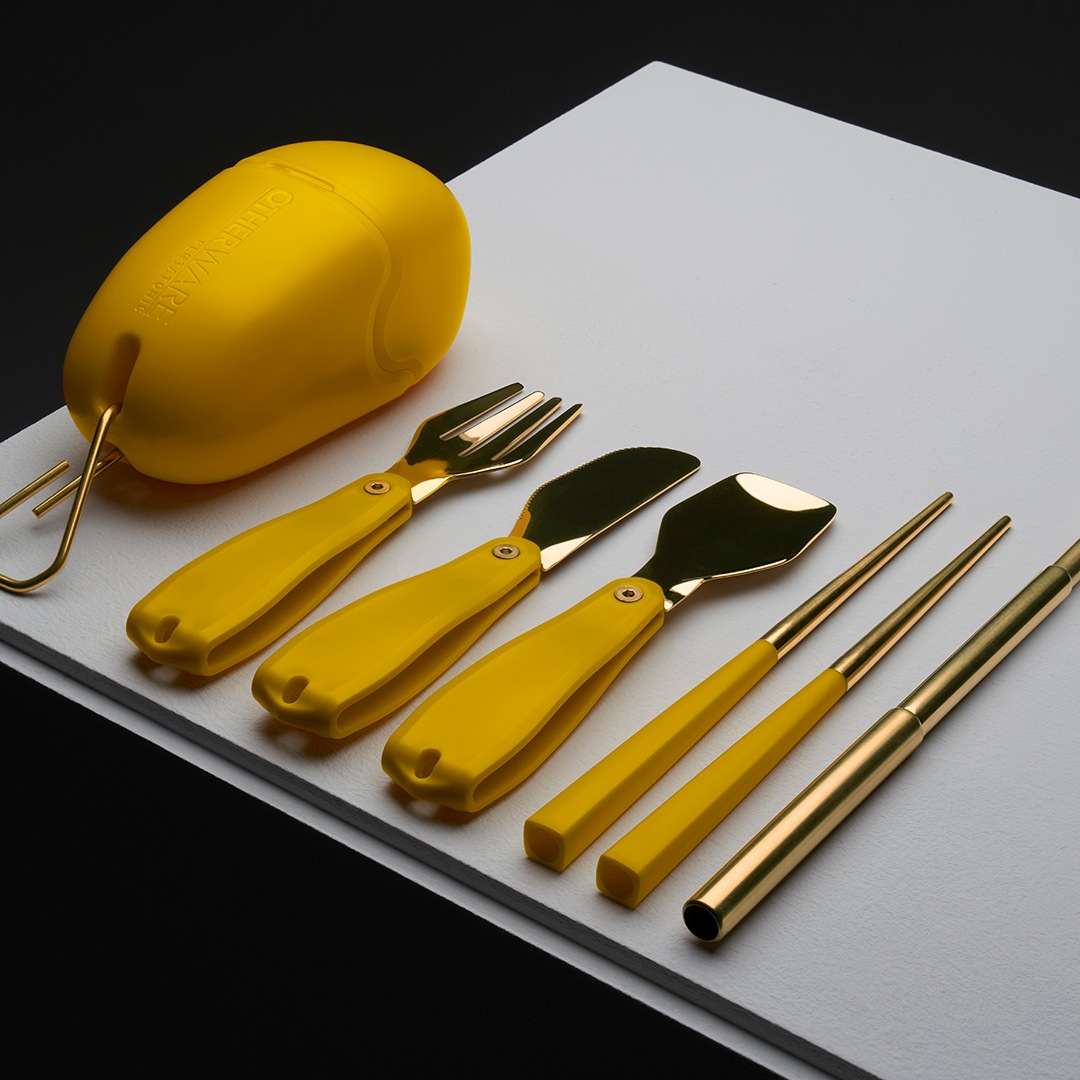 PentatonicとPharrel Williamsによって結成されたクリエイティブ集団の「i am OTHER」が共同で開発した、全てリサイクル素材を使用したサスティナブルなカトラリーキット。