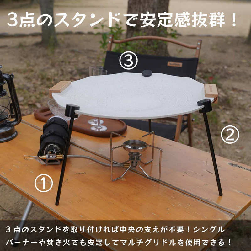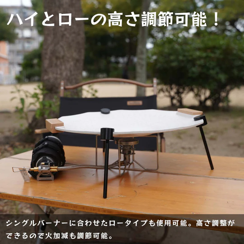 幅広く使用でき、バーナースタンドだけでなく、焚き火時の五徳としても。